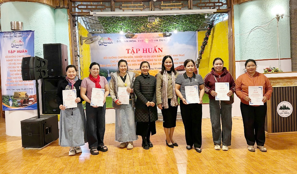 Từ ngày 26-28/11/2025, tại xã Măng Đen, Sở Văn hóa, Thể thao và Du lịch tổ chức Lớp bồi dưỡng chuyên môn, nghiệp vụ du lịch gắn với việc khai thác các giá trị văn hóa truyền thống đối với các điểm du lịch tiêu biểu vùng dân tộc thiểu số và miền núi trên địa bàn tỉnh Quảng Ngãi năm 2025.