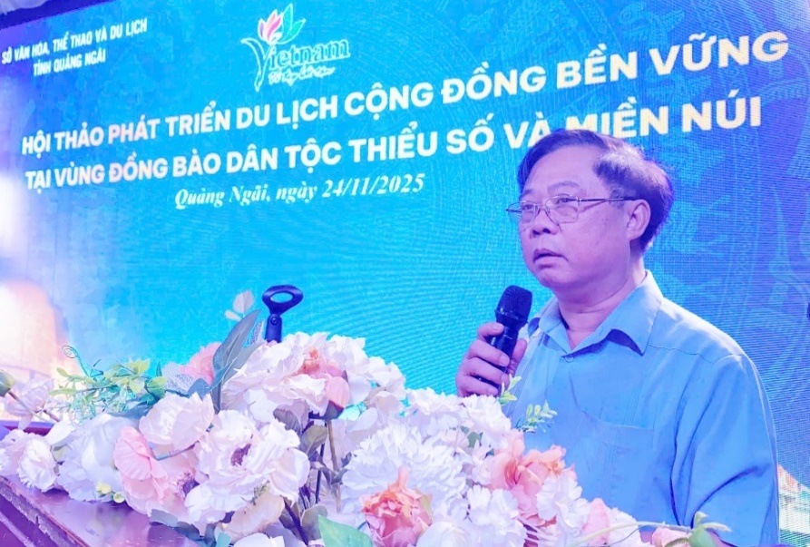 Phát biểu khai mạc Hội thảo, Phó Cục trưởng Cục Du lịch Quốc gia Phạm Văn Thủy cho biết, du lịch thế giới đang chuyển dịch mạnh mẽ theo hướng bền vững. Xu hướng phát triển du lịch dựa vào cộng đồng dân cư bản địa, đề cao yếu tố trải nghiệm, bảo tồn văn hóa và nâng cao sinh kế cho người dân ngày càng được ưu tiên. Du khách không còn chỉ tìm kiếm những điểm đến đông khách, mà hướng nhiều hơn đến các không gian yên bình, nơi có thể kết nối với thiên nhiên và văn hóa địa phương. Xu thế “du lịch cộng đồng bền vững” đã trở thành hạt nhân trong chiến lược phát triển của nhiều quốc gia trên thế giới. Ông còn nhấn mạnh, với hệ sinh thái tự nhiên phong phú, từ dãy Trường Sơn hùng vĩ, rừng núi nguyên sinh, những con suối và thác nước trong xanh cho đến bờ biển dài và các đảo ven bờ, Quảng Ngãi mang vẻ đẹp hài hòa giữa núi rừng và biển cả; nơi có 43 dân tộc anh em, mỗi dân tộc đều có kho tàng văn hóa đặc sắc như: cồng chiêng, lễ hội truyền thống, nghề thủ công, ẩm thực bản địa và các tri thức dân gian quý giá. Đây chính là nguồn tài nguyên vô giá cho phát triển du lịch cộng đồng bền vững.