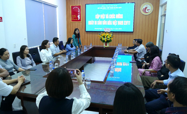 Sở Văn hóa, Thể thao và Du lịch tỉnh Quảng Ngãi vừa tổ chức buổi gặp mặt và chúc mừng nhân kỷ niệm 20 năm Ngày Di sản Văn hóa Việt Nam. Ngày 23/11 hằng năm là “Ngày Di sản Văn hóa Việt Nam” nhằm kêu gọi toàn xã hội chung tay bảo vệ và phát huy giá trị di sản văn hóa, đáp ứng nhu cầu về văn hóa ngày càng cao của nhân dân, góp phần xây dựng và phát triển nền văn hóa Việt Nam tiên tiến, đậm đà bản sắc dân tộc và đóng góp vào kho tàng di sản văn hóa thế giới.