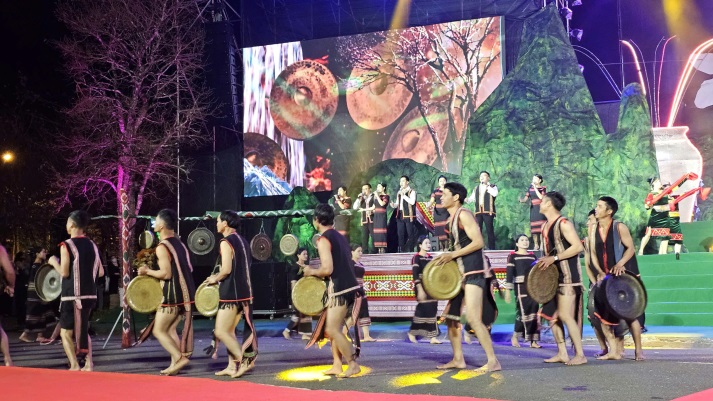 Biểu diễn nghệ thuật cồng chiêng đậm nét Tây Nguyên tại lễ khai mạc.